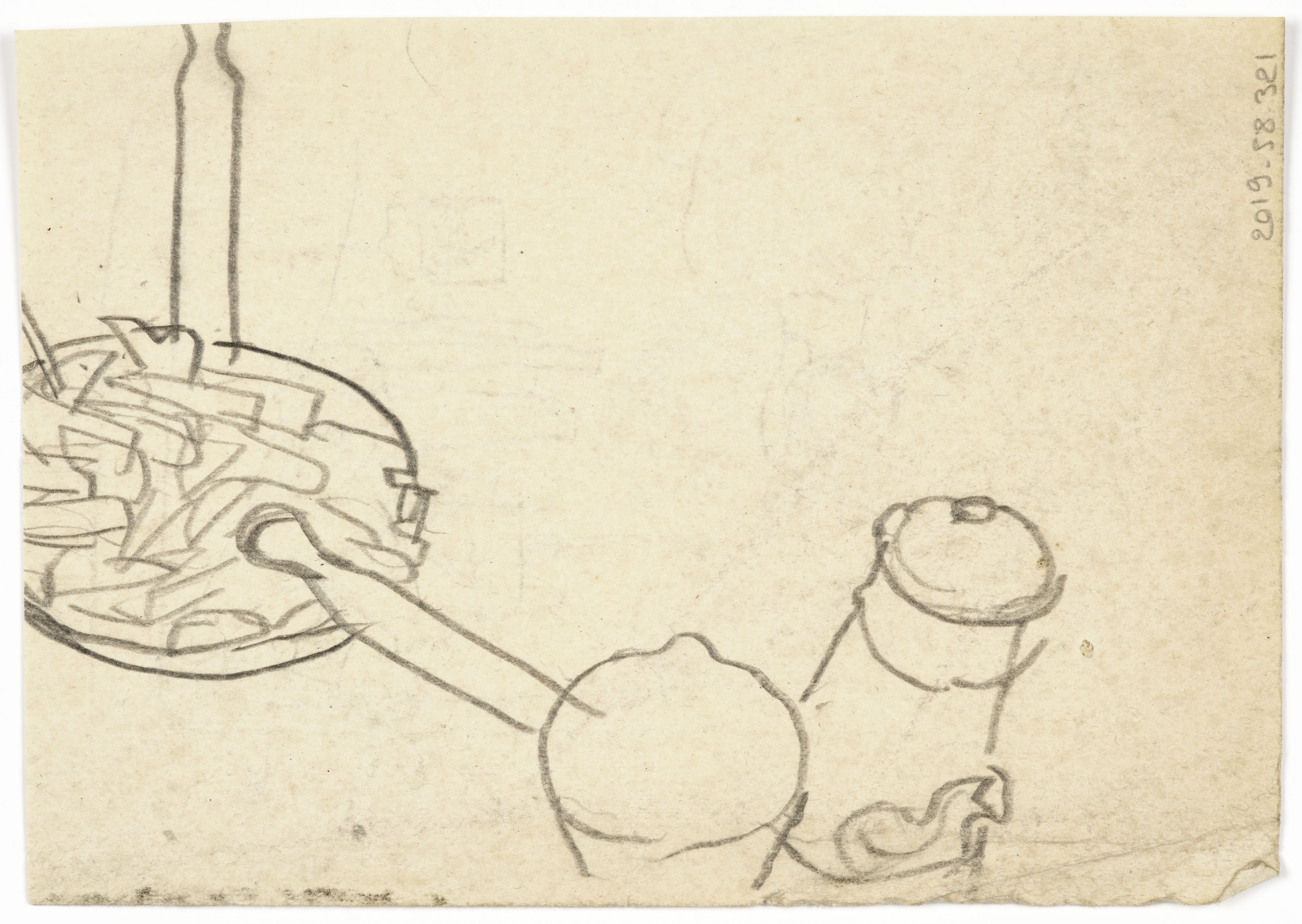 Crayon graphite sur papier vélin. Esquisse au crayon graphite au verso